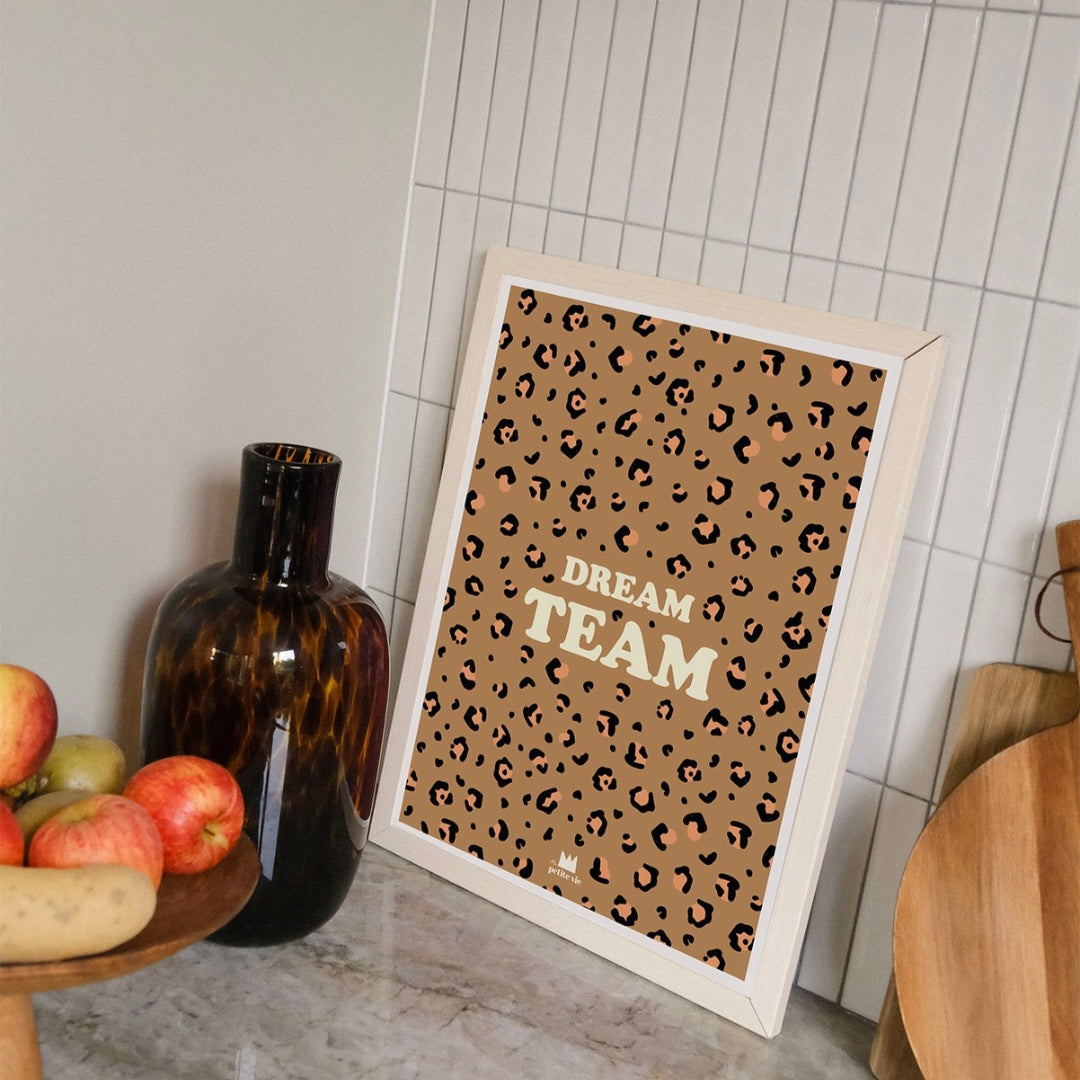 Apportez style et bonne humeur à votre intérieur avec notre affiche Dream Team et son imprimé Léopard plein de pep’s ! Chaque impression est réalisée sur du papier naturel et emballée individuellement dans un tube cartonné.