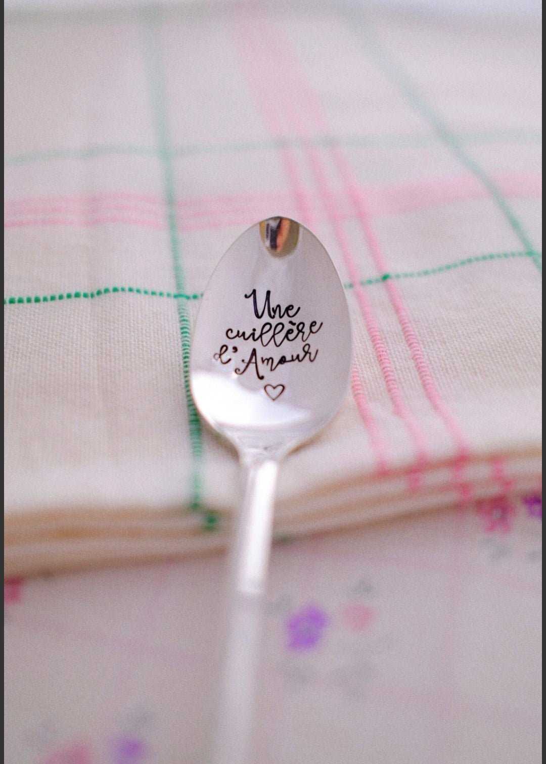 Savourez ou offrez des moments doux et poétiques avec cette cuillère unique, chinée et gravée à la main par Les Petites Cuillères de Juliette. Chaque pièce a déjà une histoire et devient un objet chargé de charme et d’authenticité.