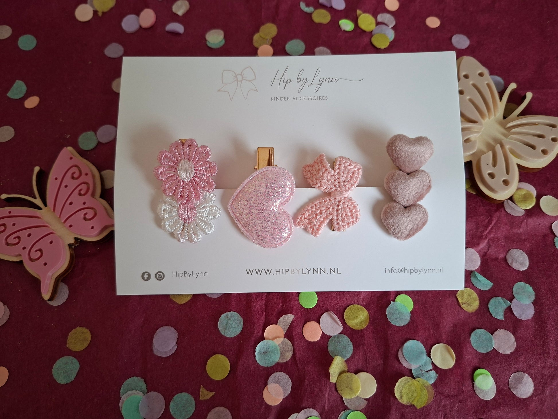 🌸 Ensemble de 4 barrettes Liz en rose, avec clips dorés et argentés pour assortir toutes vos tenues. Parfait pour ajouter une touche mignonne et chic à chaque coiffure, du quotidien aux occasions spéciales.