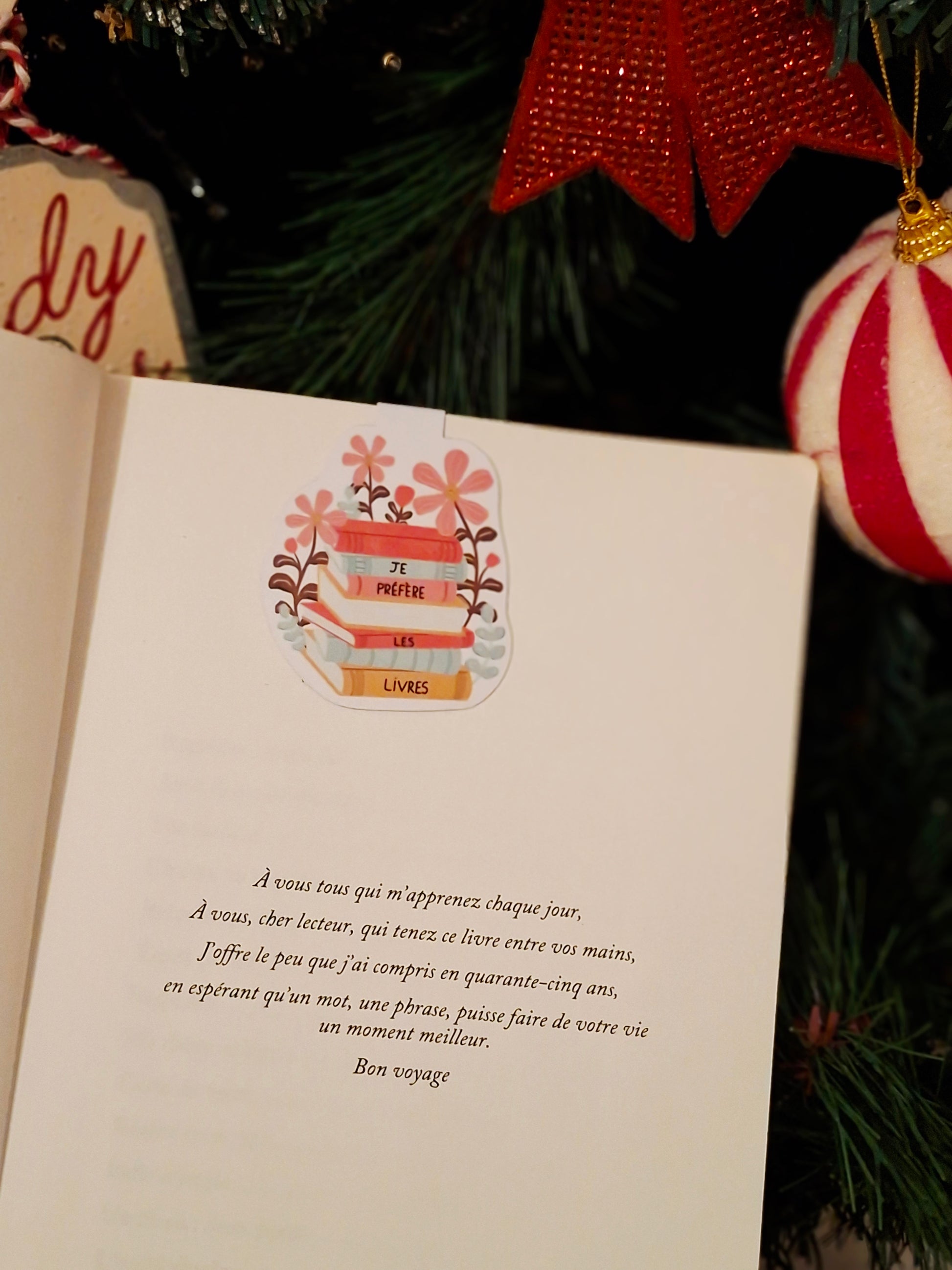 Ce marque-page met en valeur une pile de livres accompagnée du message “Je préfère les livres”. Aimanté, il est parfait pour garder la page de ton roman préféré ou de ton carnet d’idées.