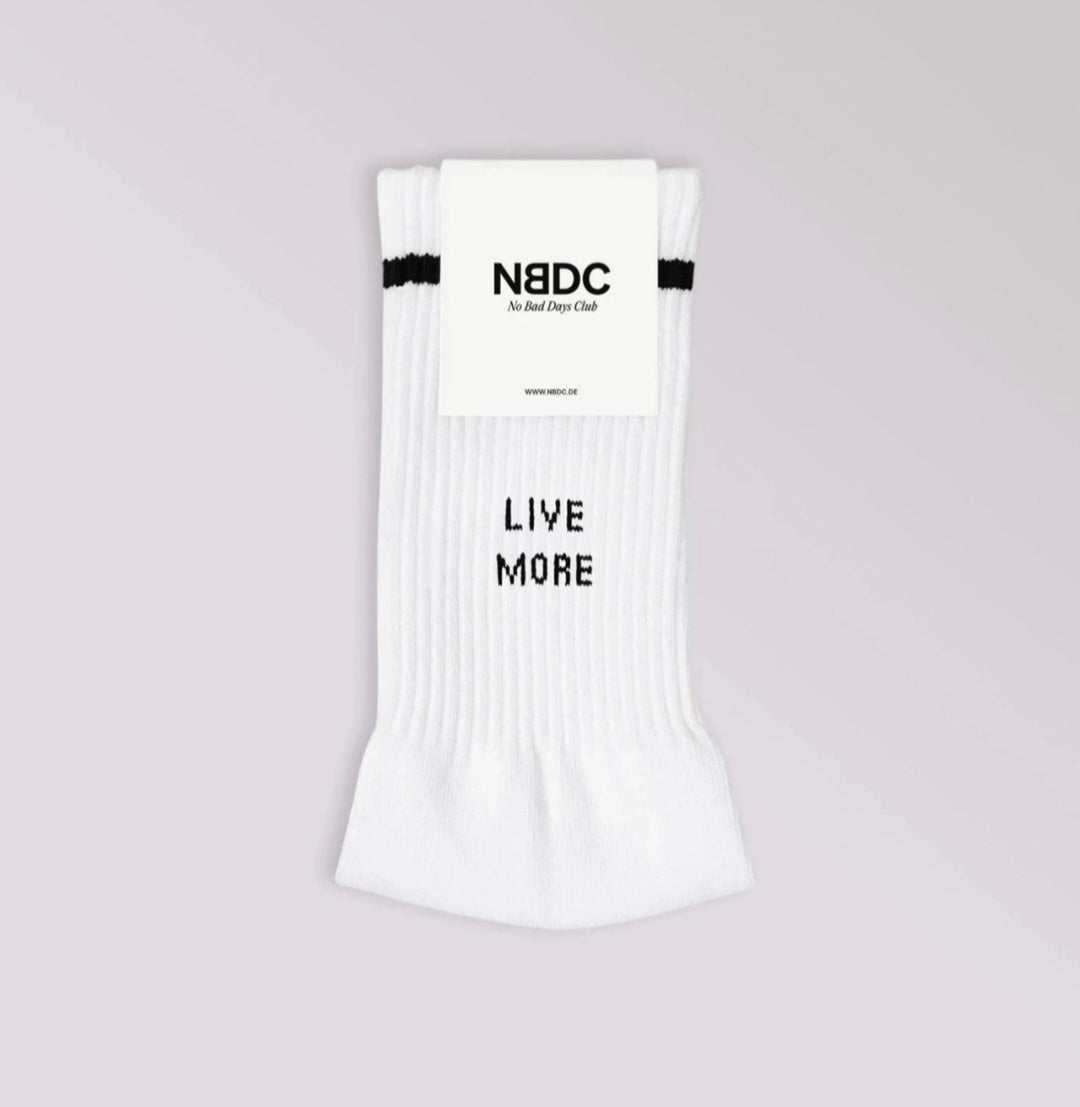 🧦 "Vivez plus, inquiétez-vous moins": un message à porter pour rappeler équilibre, calme et force. Noir sur blanc avec des rayures rétro, ces chaussettes allient style et inspiration au quotidien.