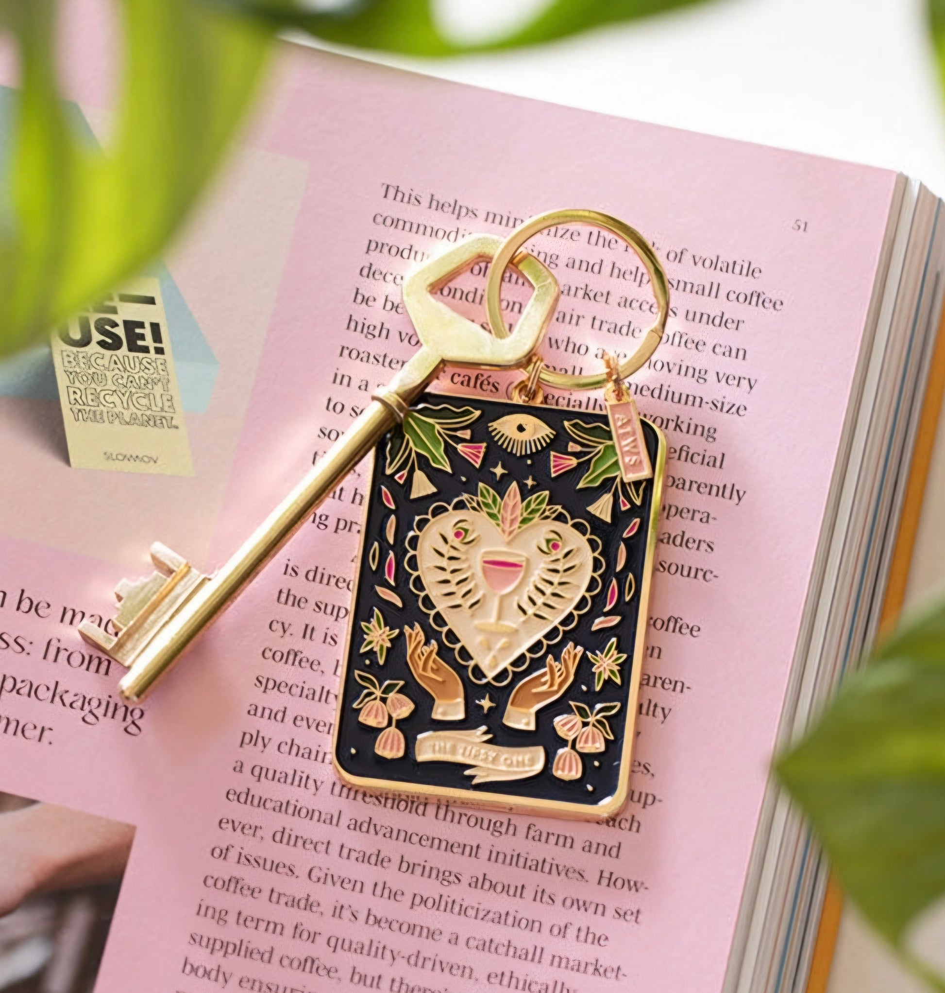 Le porte-clés Tarot Tipsy Card mêle magie et originalité avec son design en émail sublimé d’une finition dorée. Parfait pour les passionnés de tarot ou les amateurs d’accessoires singuliers, il apporte une touche symbolique, magie et raffinée à vos clés ou à votre sac.