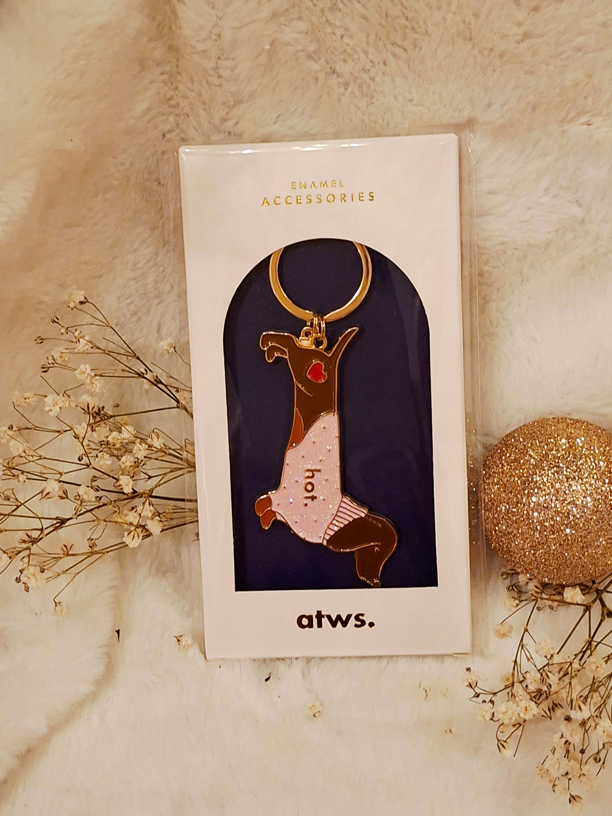 🐾🌭 Apportez fantaisie et personnalité à vos clés ou votre sac avec le porte-clés Hot Dachshund. Ce teckel adorable en émail doré ajoute charme et originalité à votre quotidien.